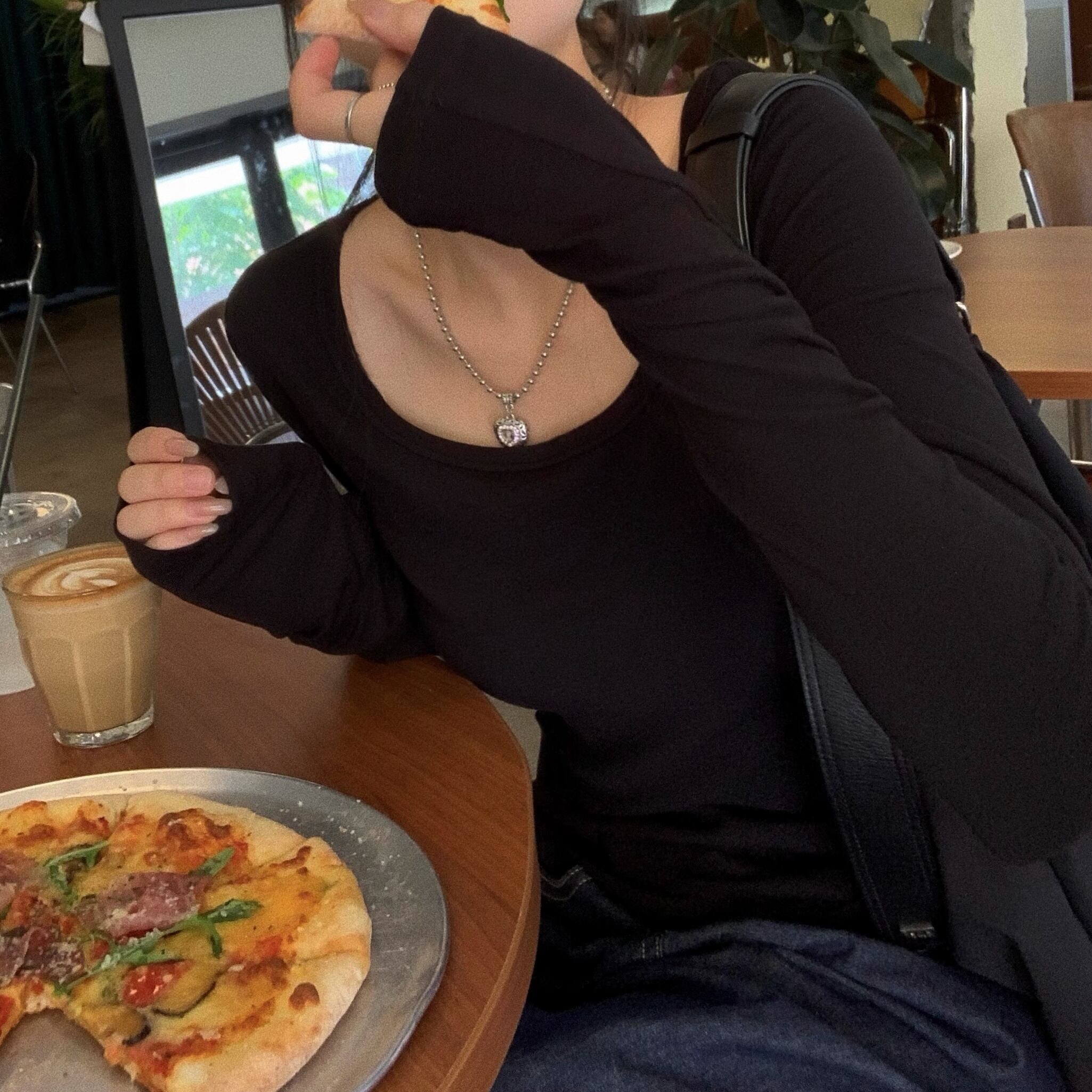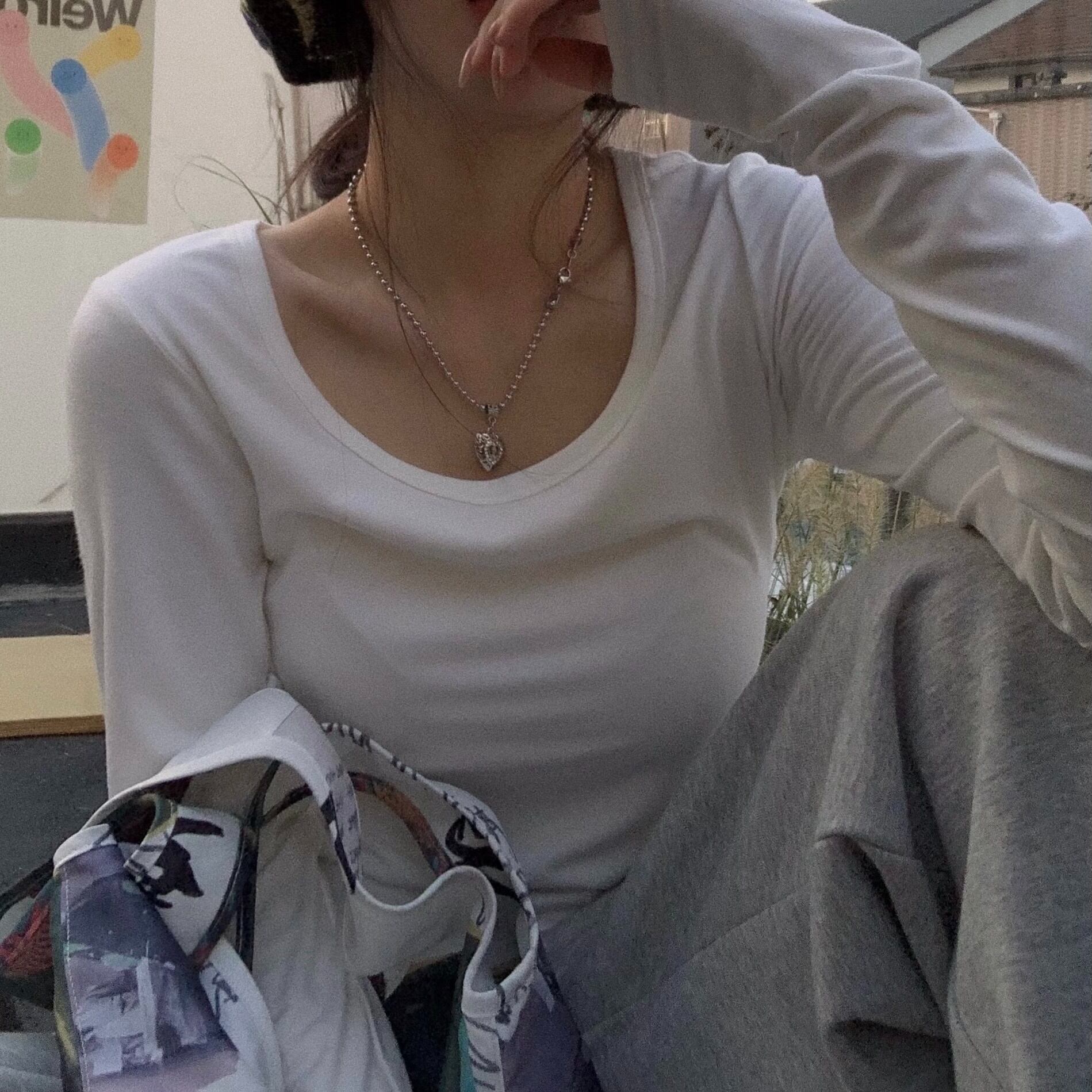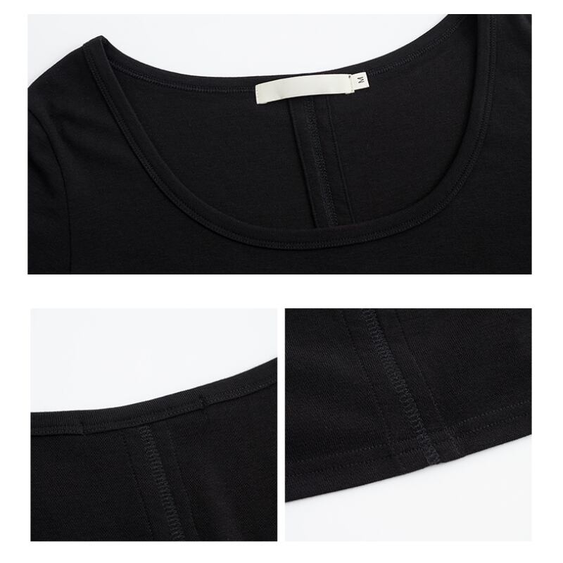 Uネックで女性らしく仕上げ、袖を長くデザインすることでそのまま着用してもインナーに見えないお洒落なアイテムに。