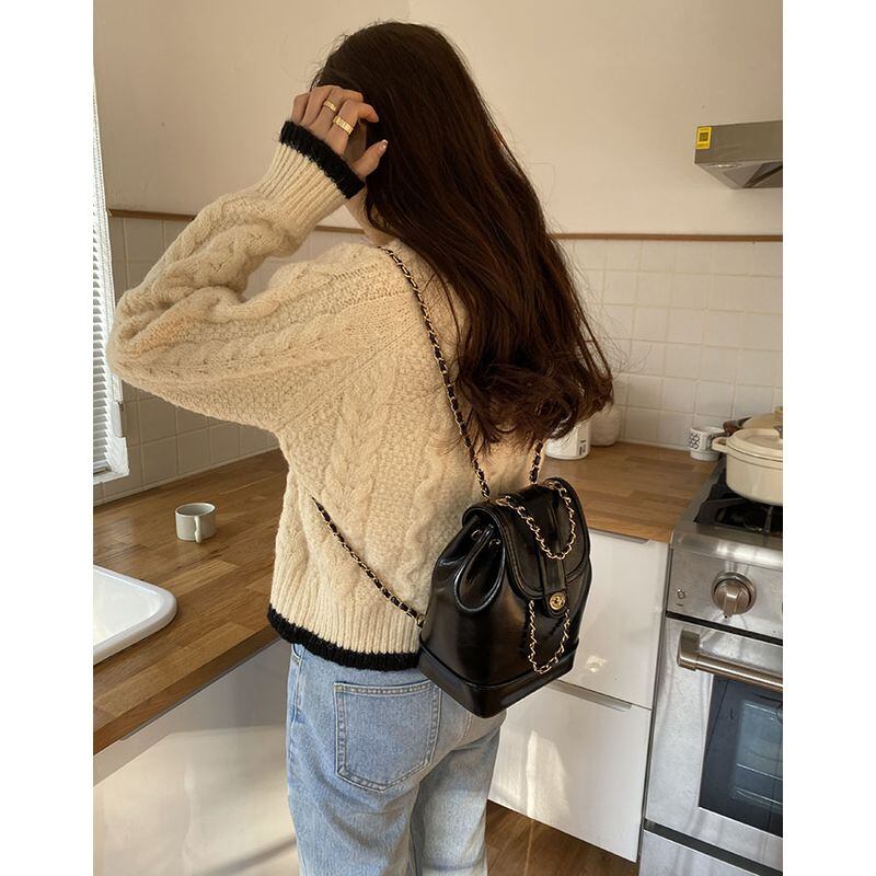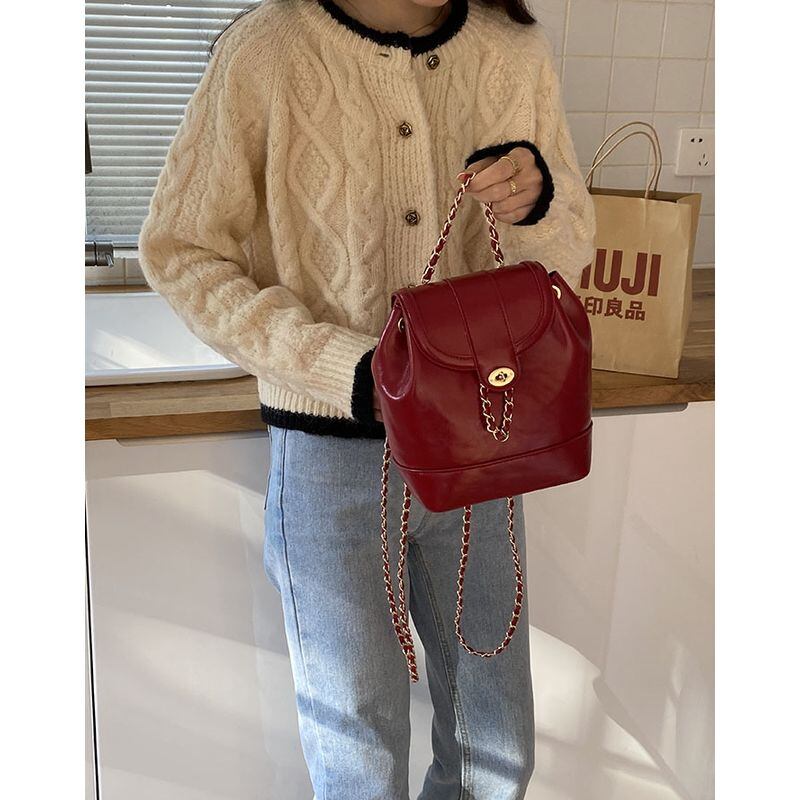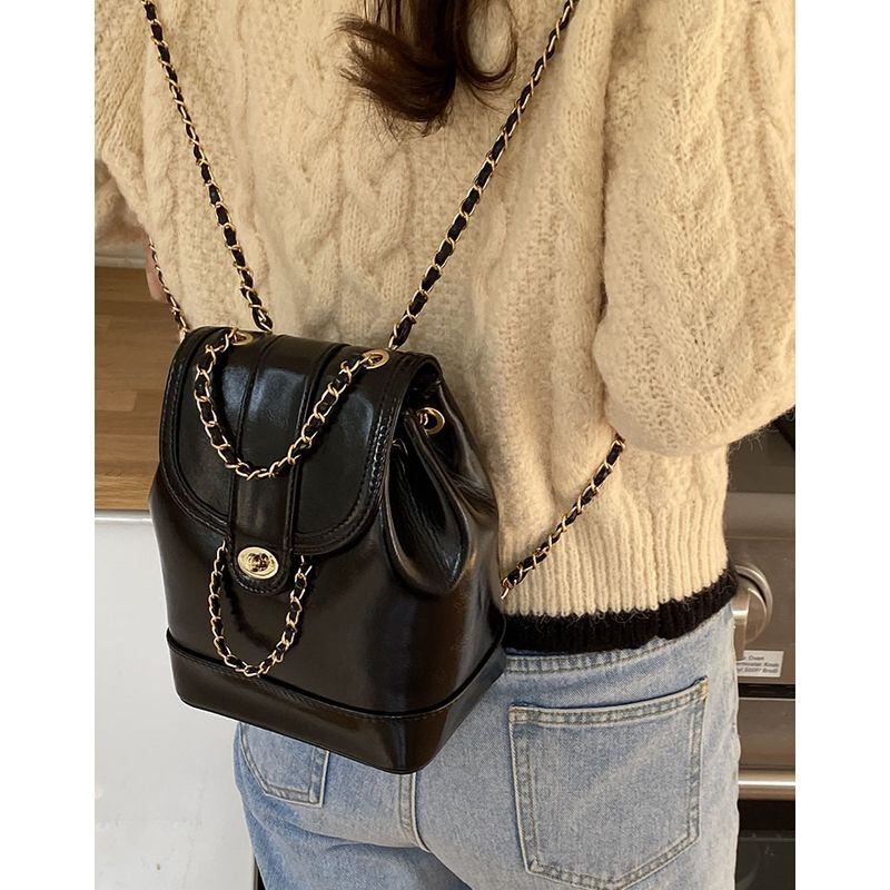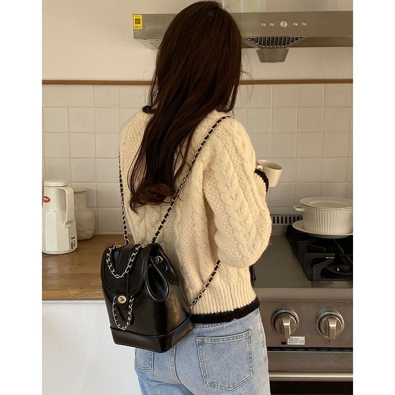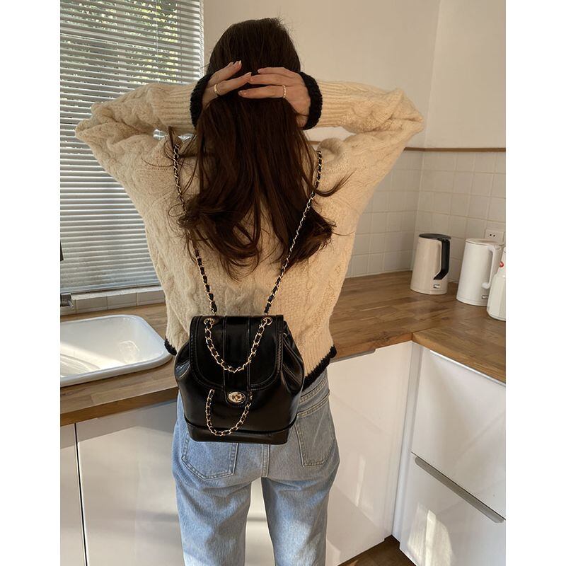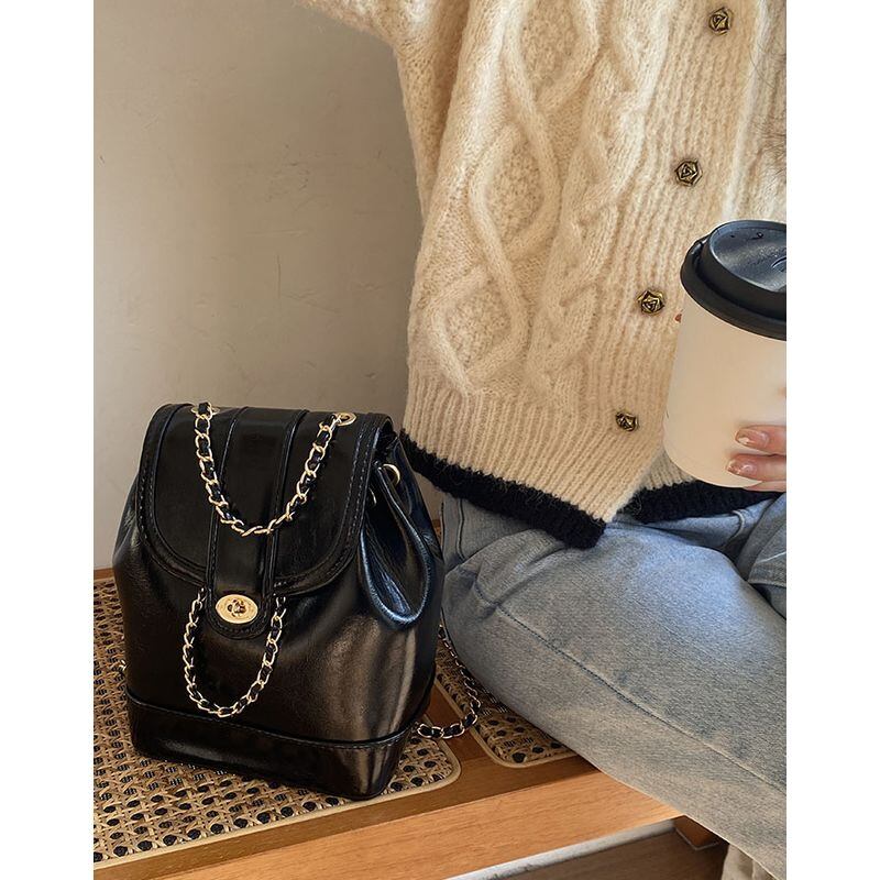 チェーンストラップがアクセントになっており、洗練された印象を与えます。