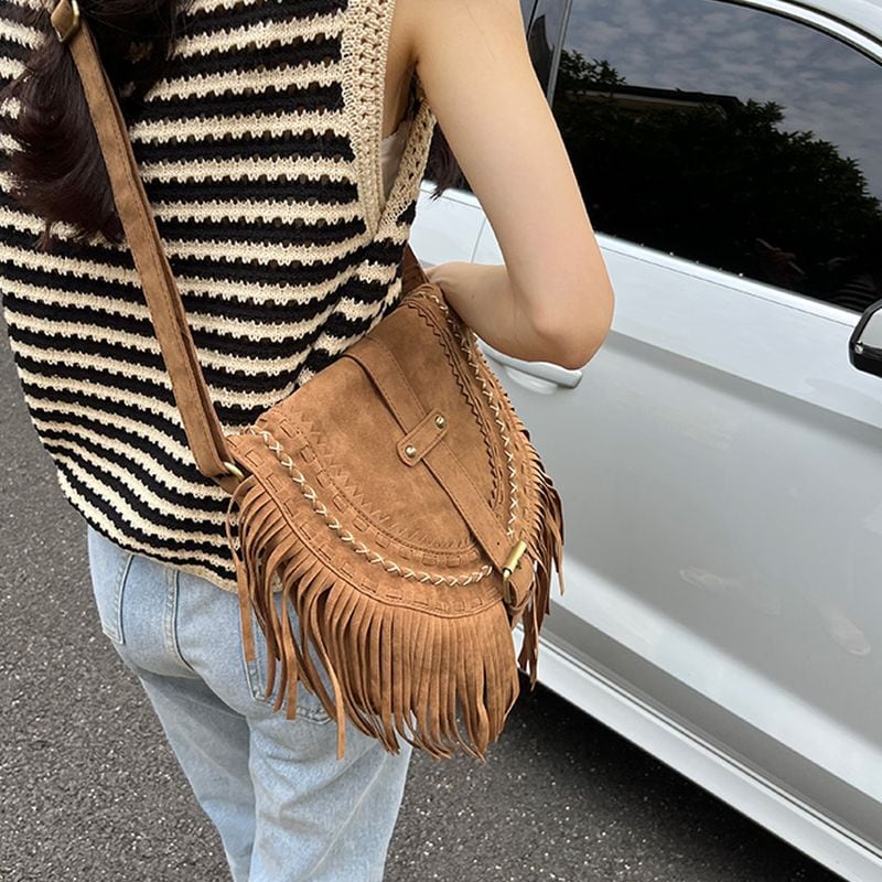 スエードアメリカンボヘミアンタッセルバッグ KB0018