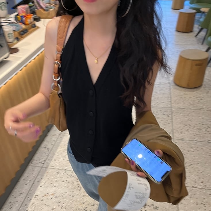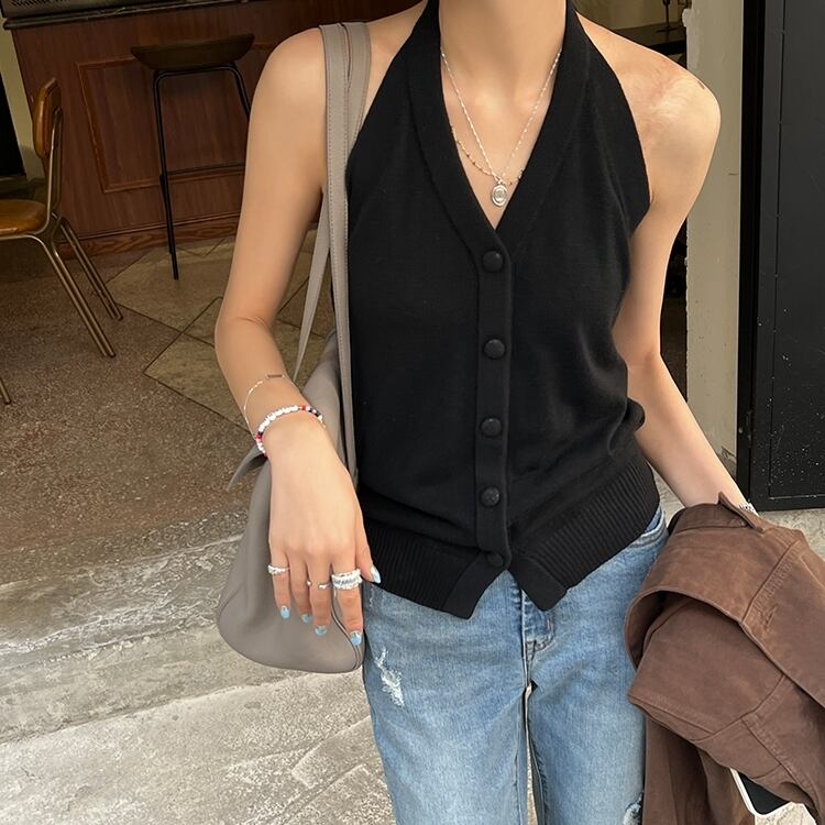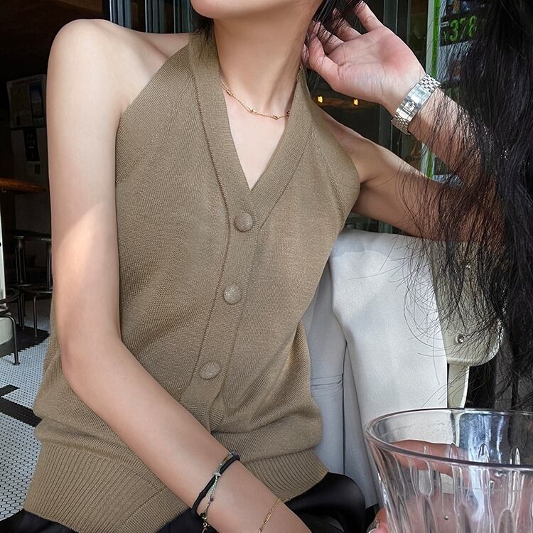 ウール混ホルターネックノースリーブニットトップス TO0179