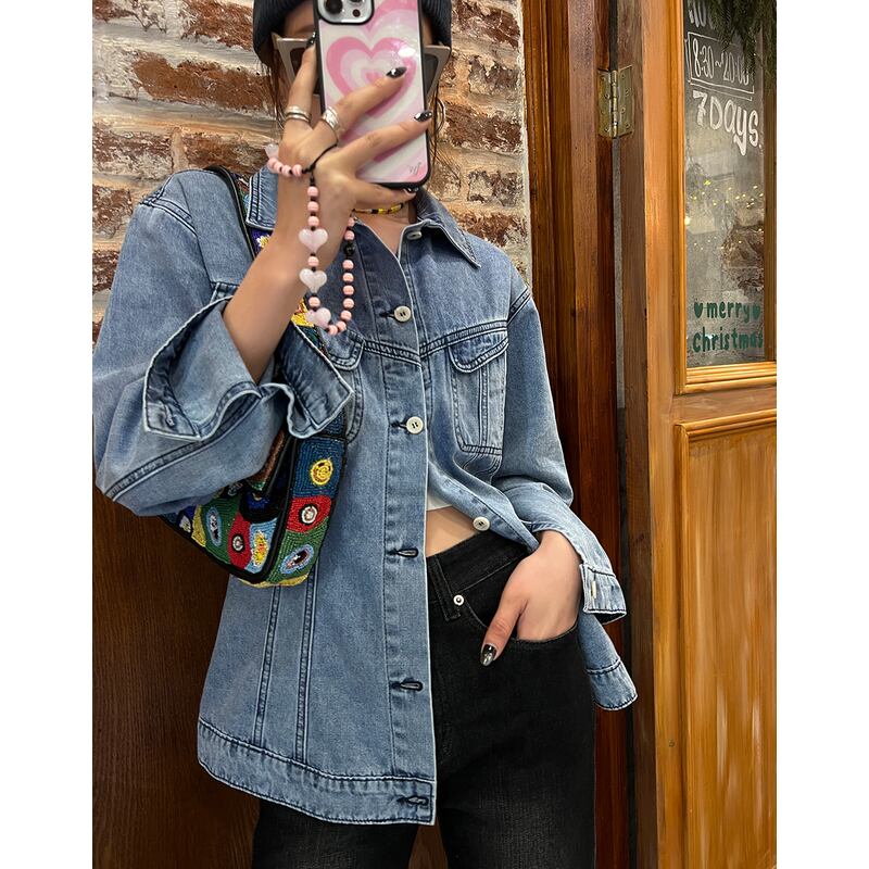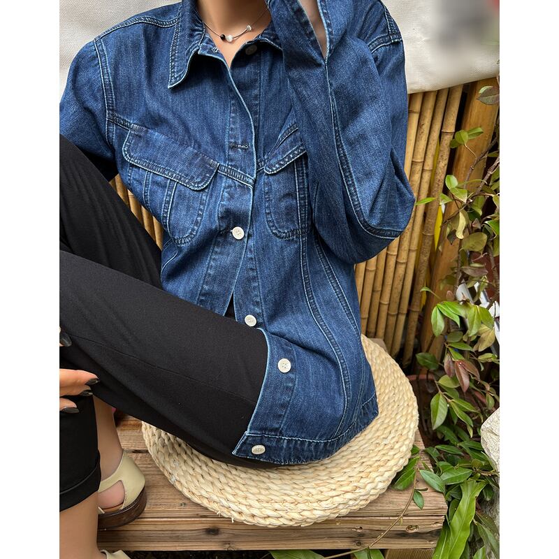 このデニムシャツは、シンプルながらもカジュアルな雰囲気が漂うアイテムです。