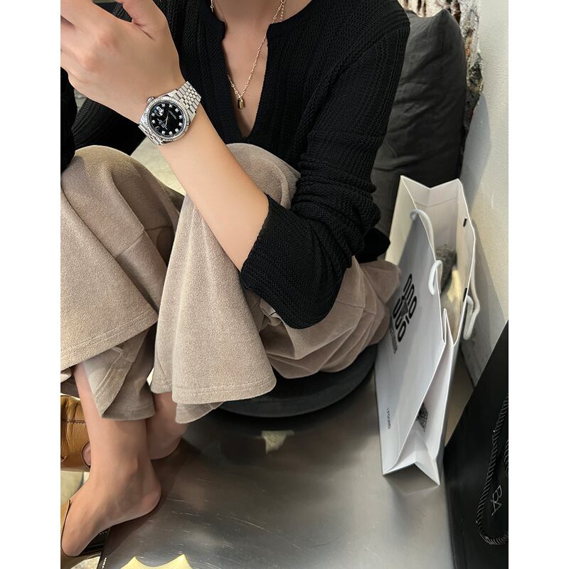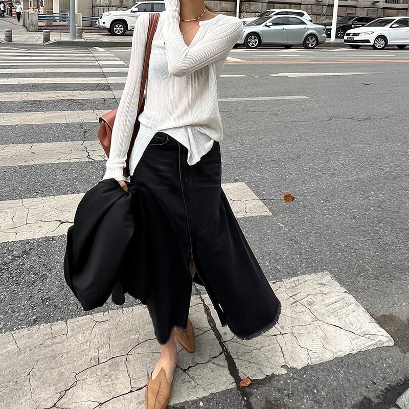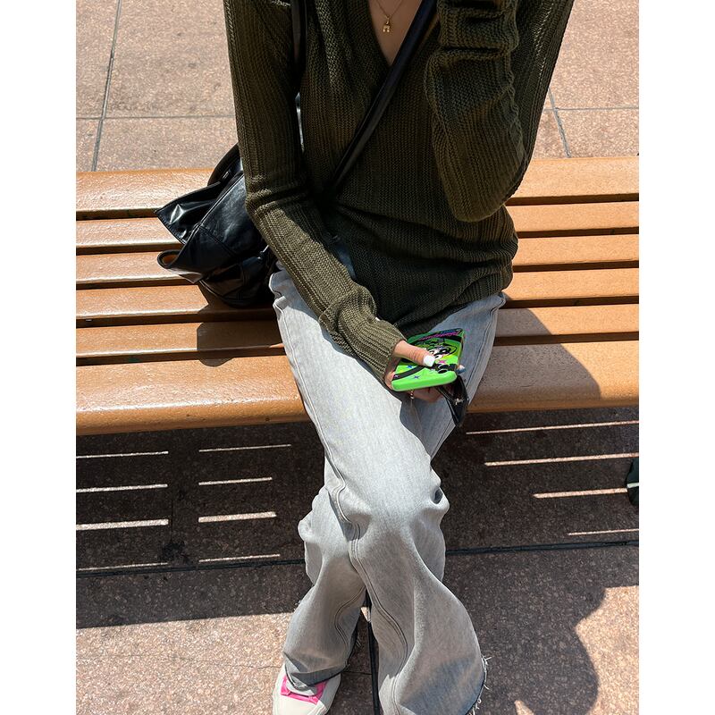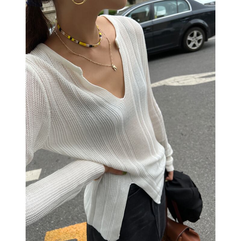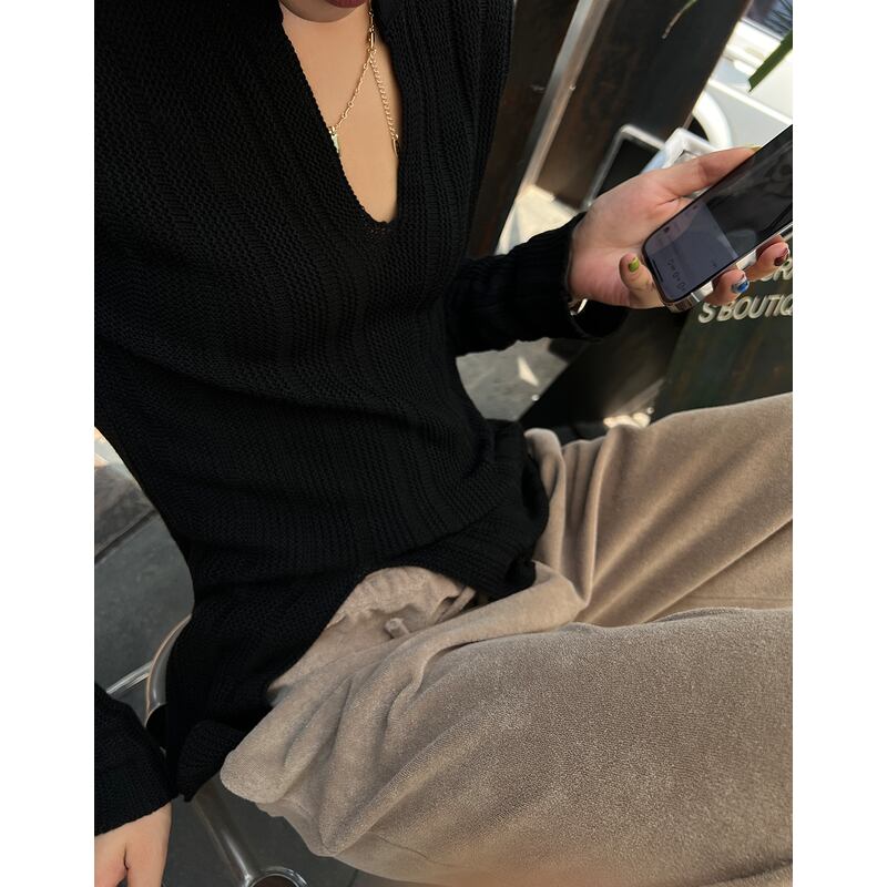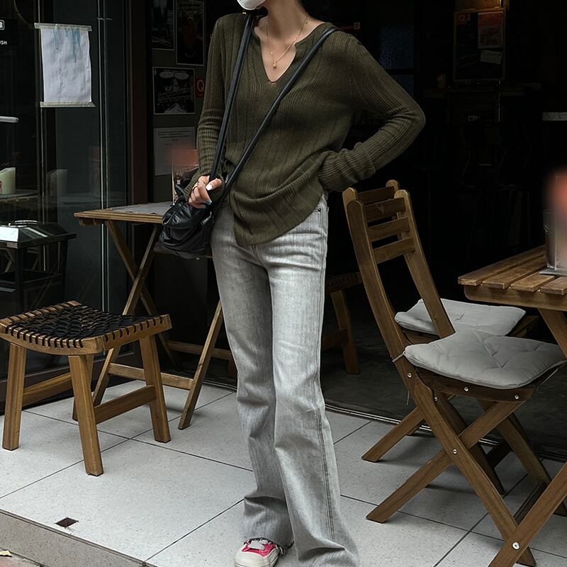 Vネックトップニットセーターは、春と秋の季節にぴったりのアイテムです。