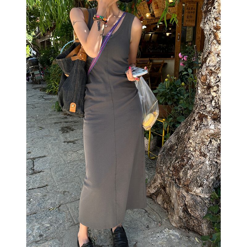 選択可能!スリムノースリーブワンピース ロングorショート 2Color ON0098