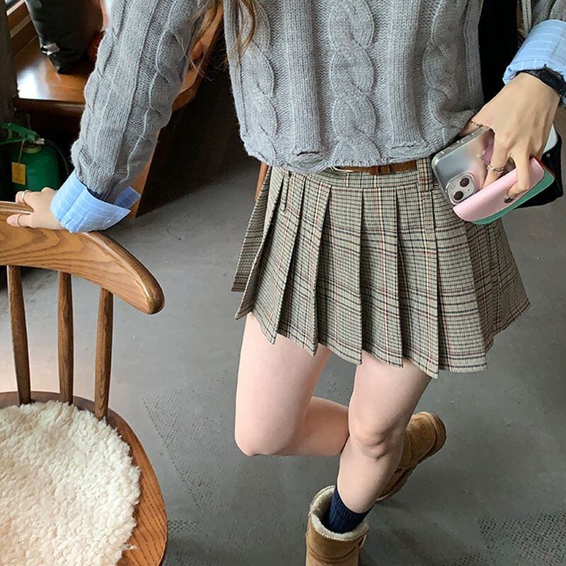 プリーツとチェック柄の組み合わせが、トレンディなスタイルを楽しむのにぴったりのスカートです。