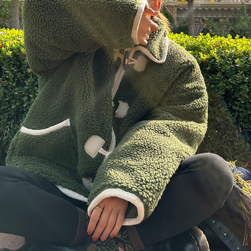 2色展開のホーンボタンが特徴のウールキルティングジャケットです。