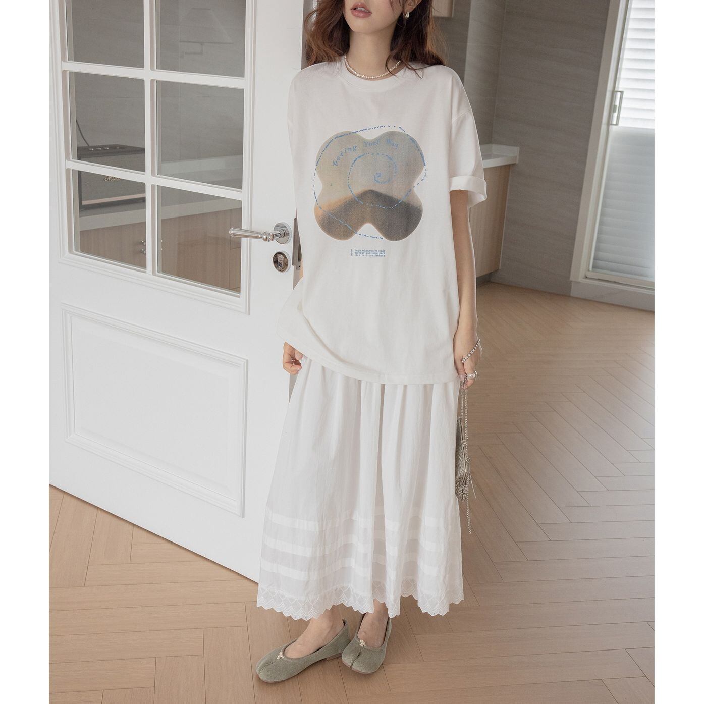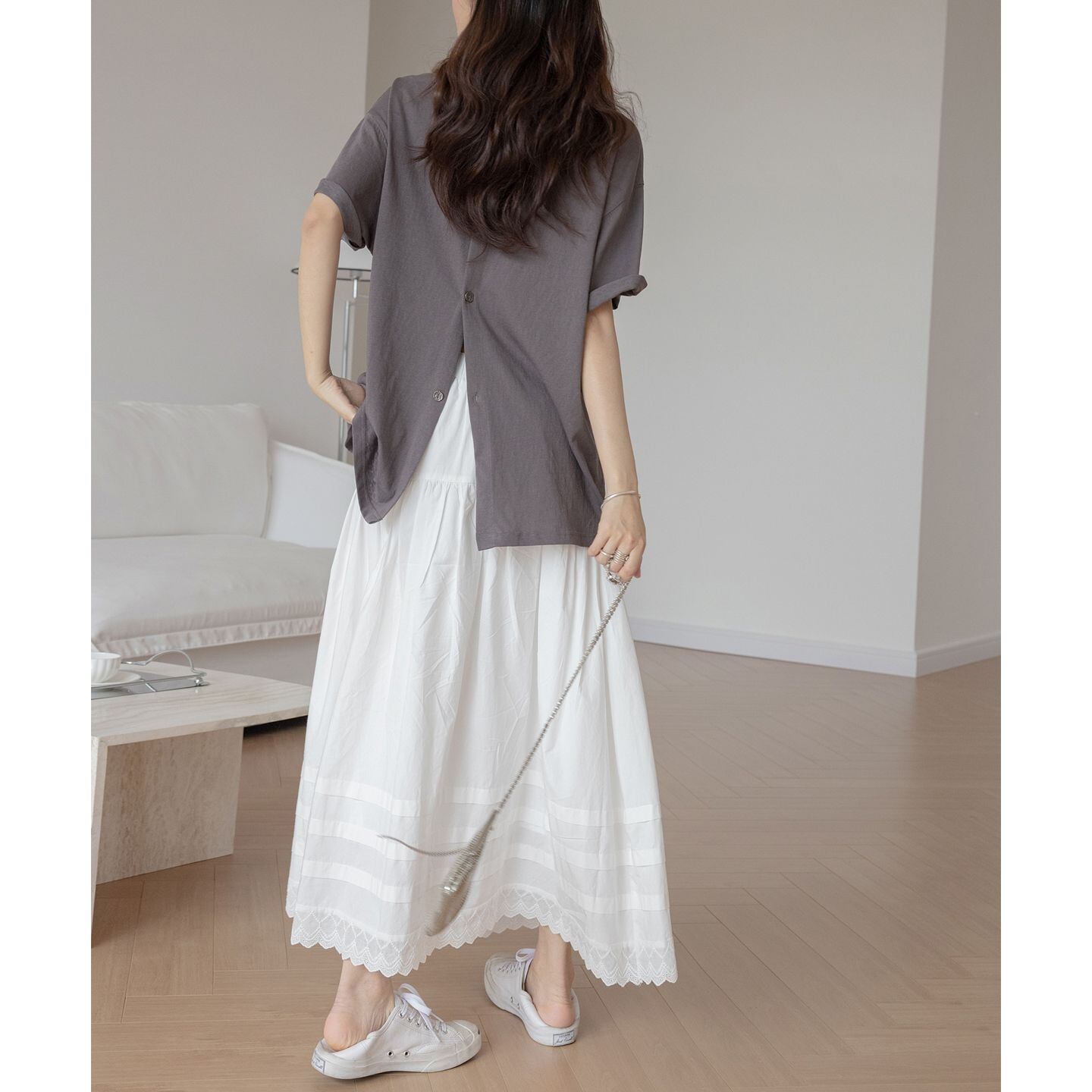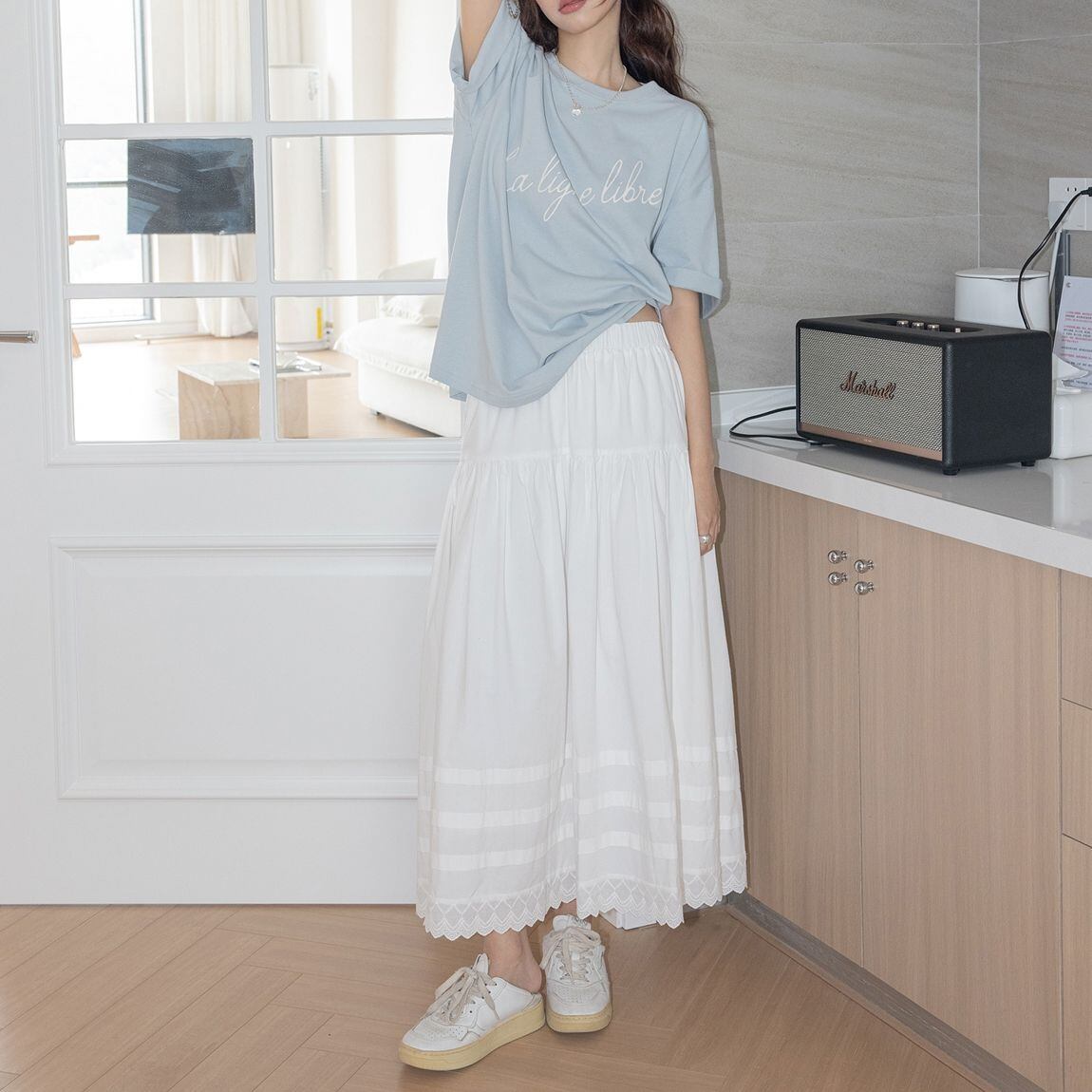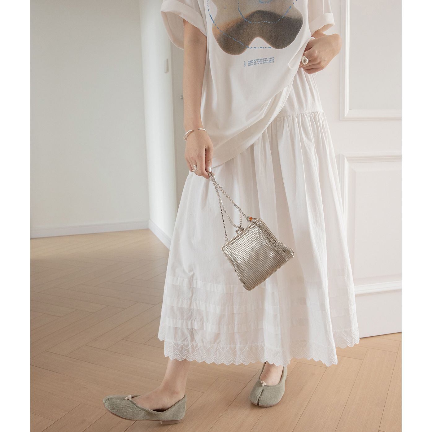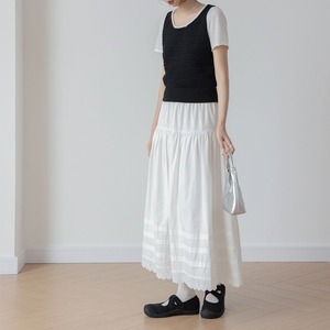 繊細なレースが美しい綿素材のケーキロングスカートです。