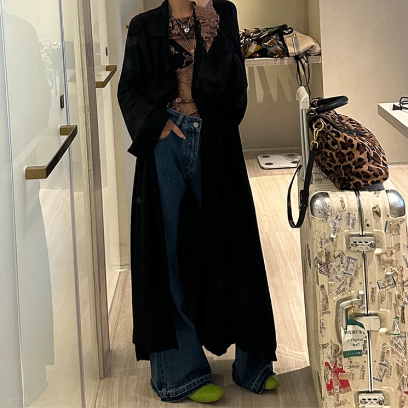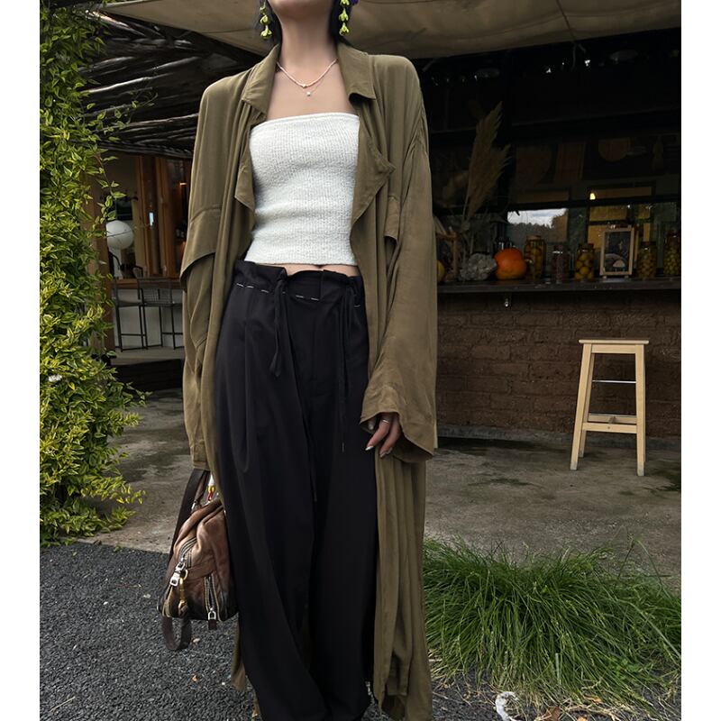 軽やかなレーヨン素材が魅力のルーズロングコート。