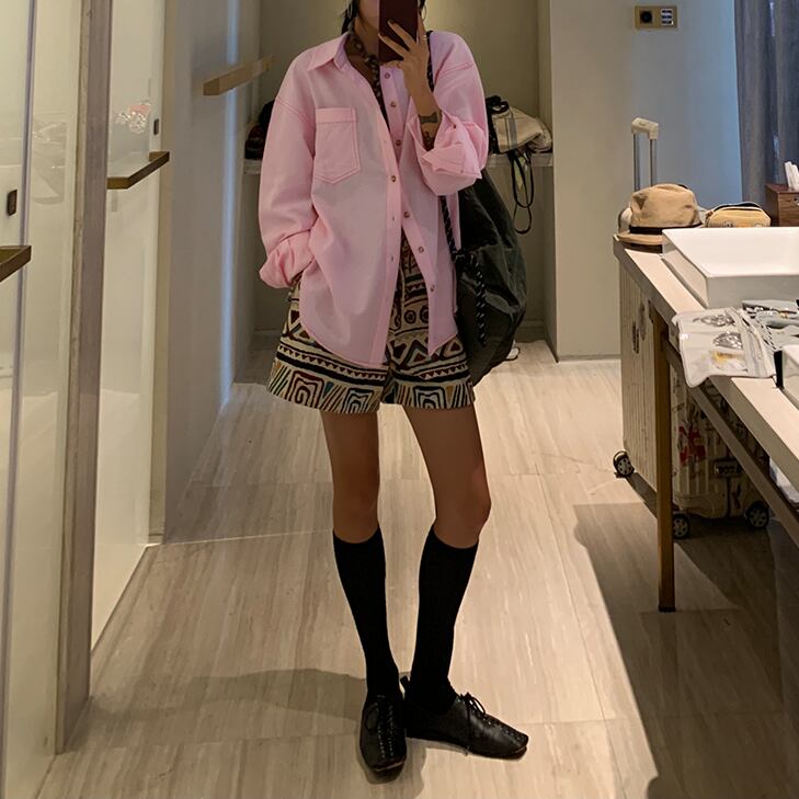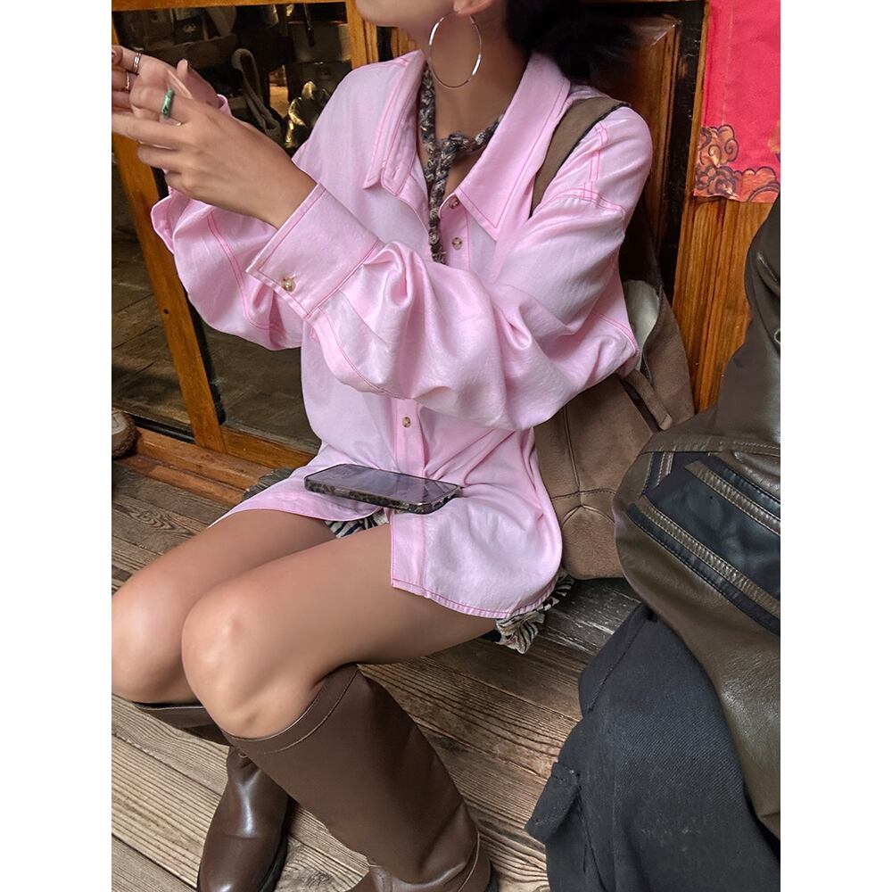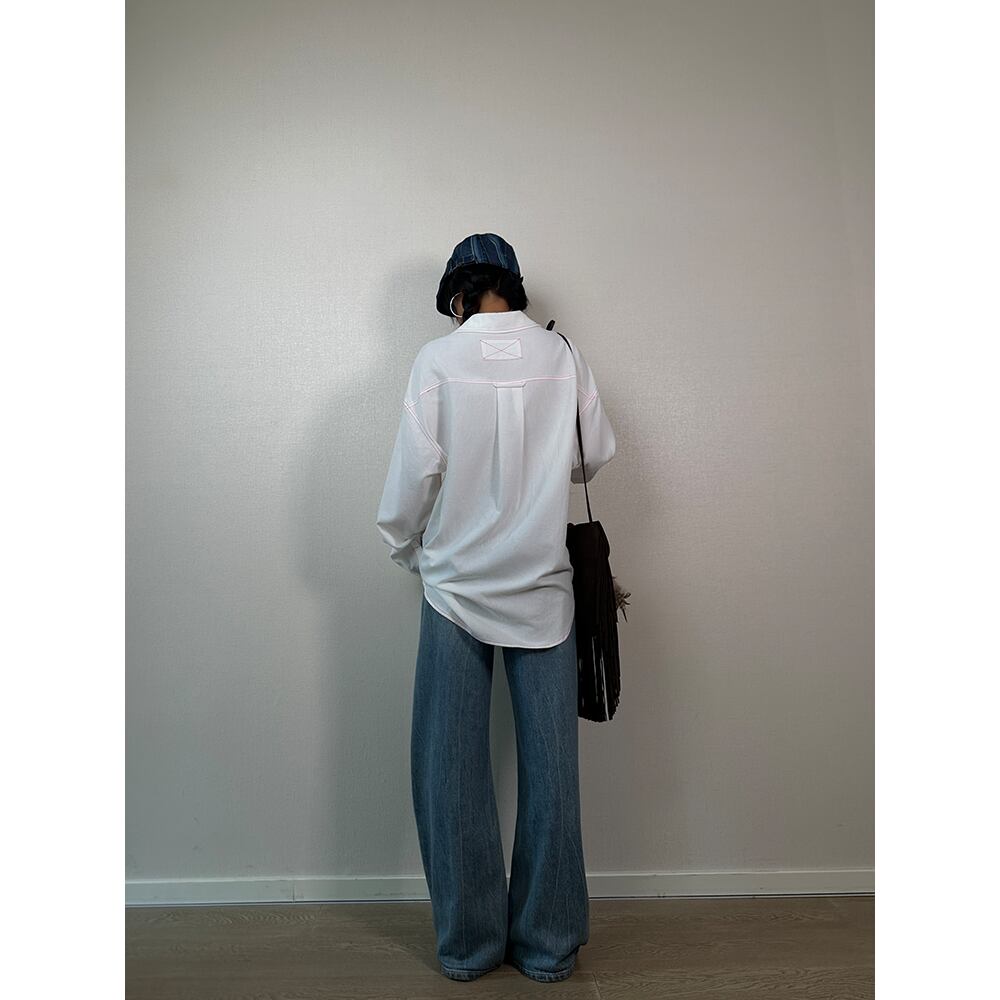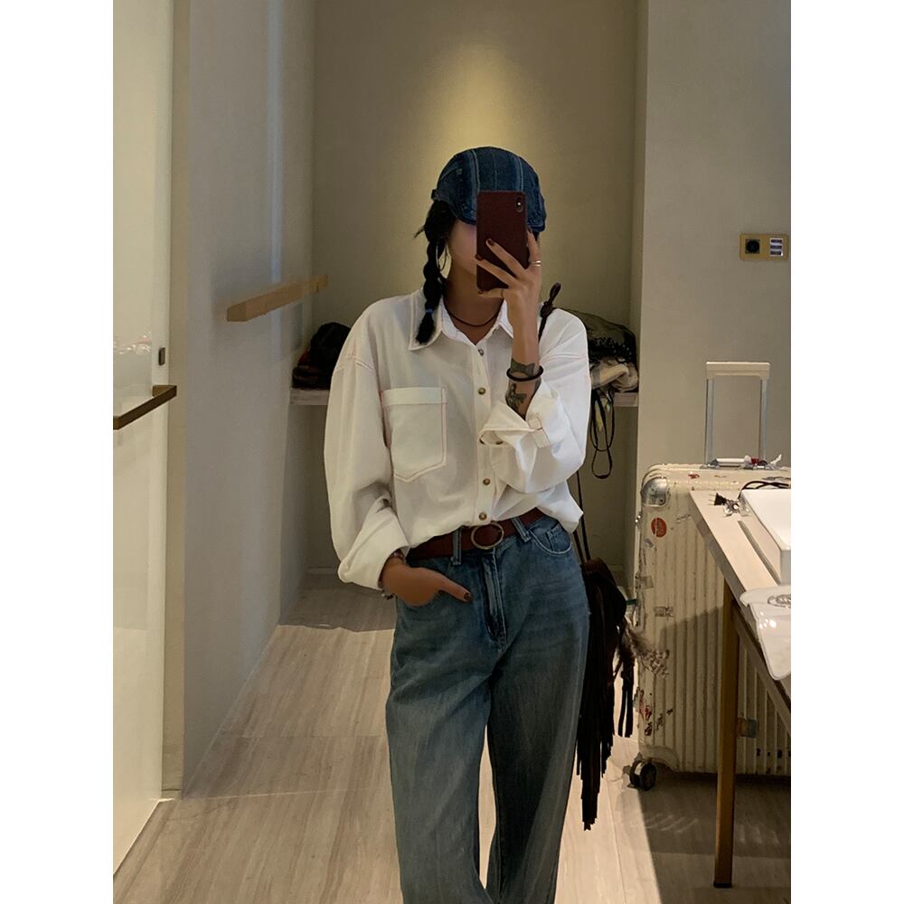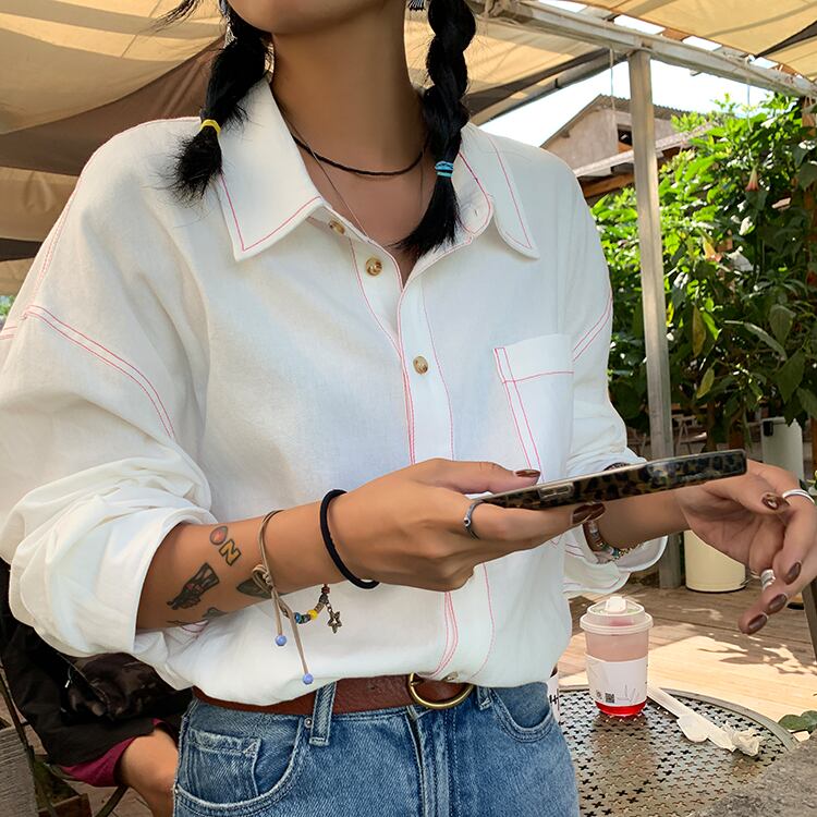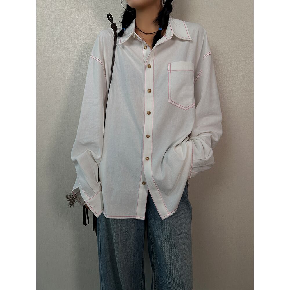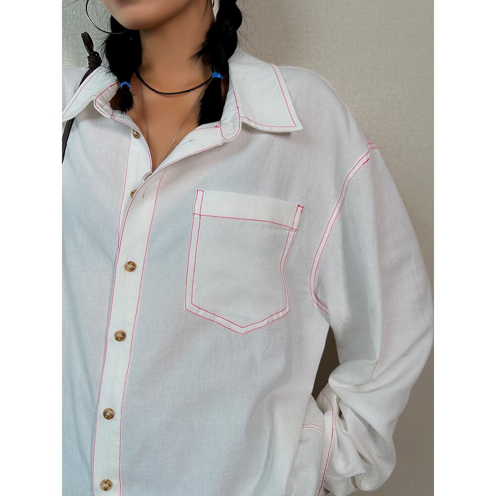トップステッチデザイン長袖シャツは、洗練されたデザインが特徴です。