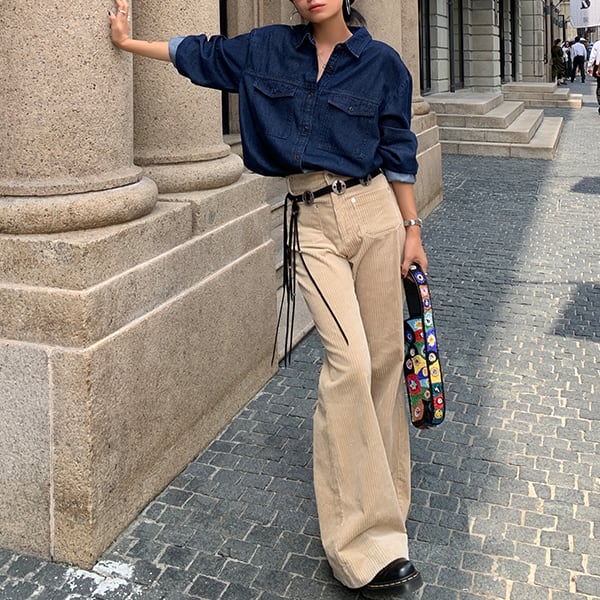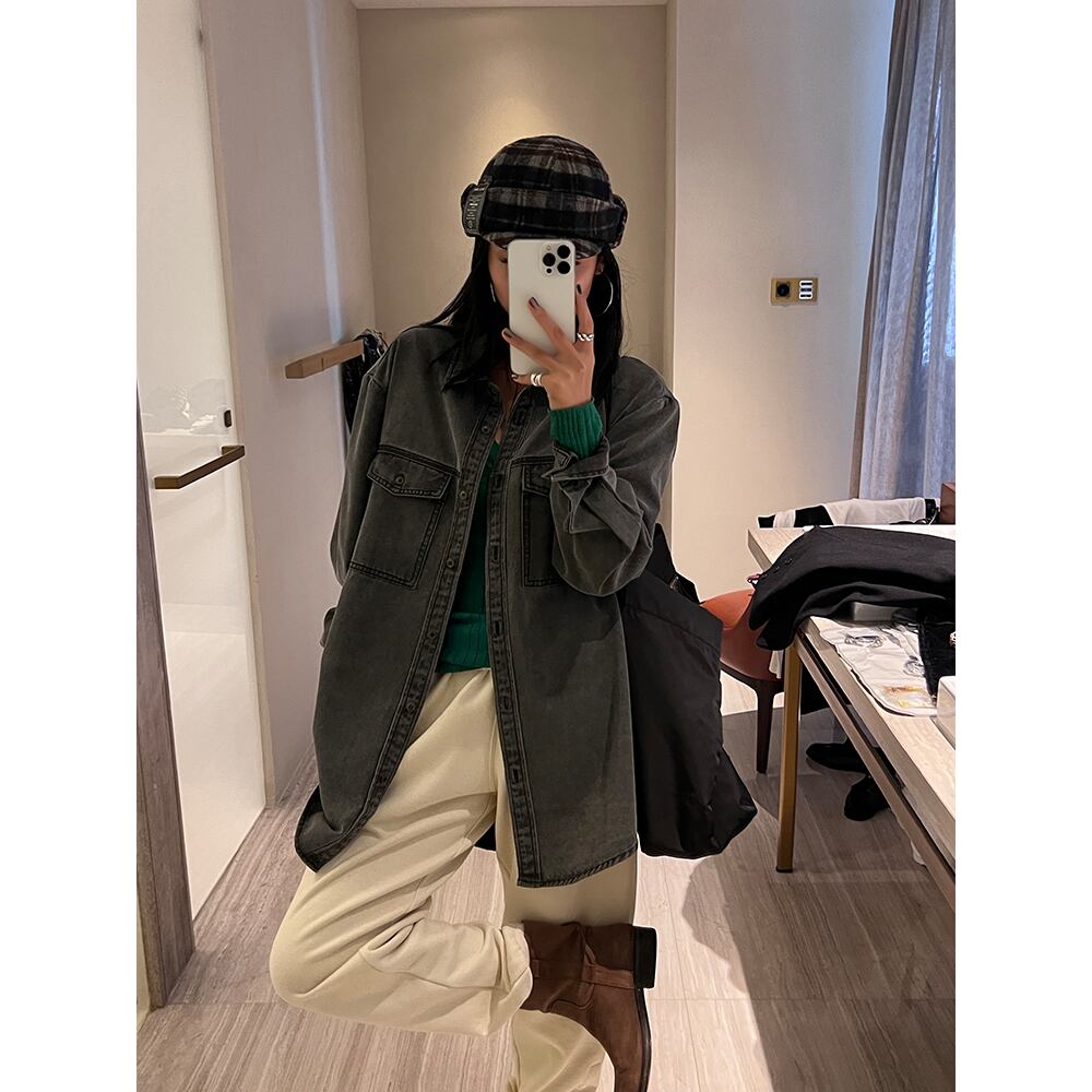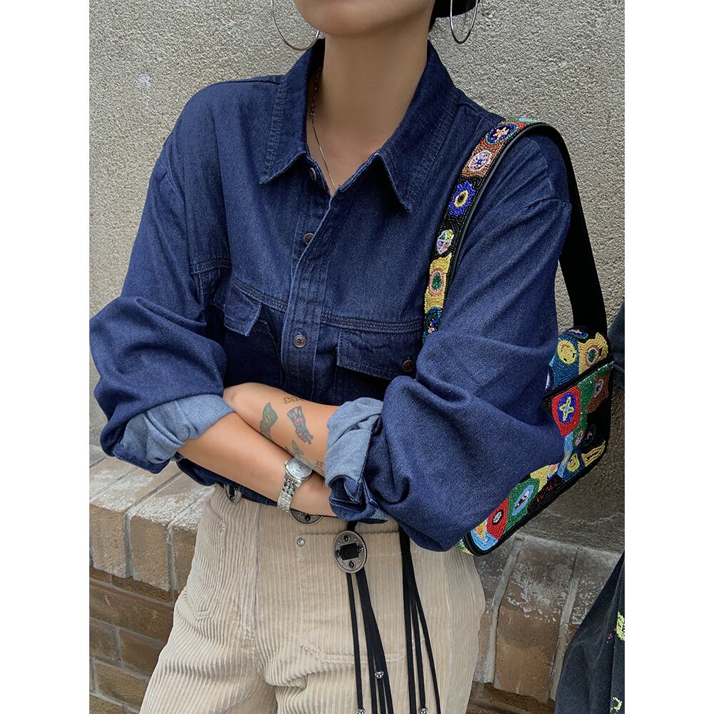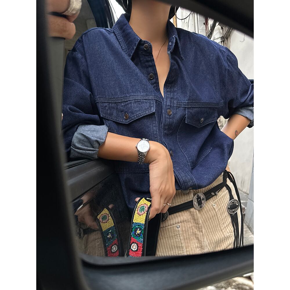 長袖デニムシャツは、クラシックでありながらトレンディなアイテムです。