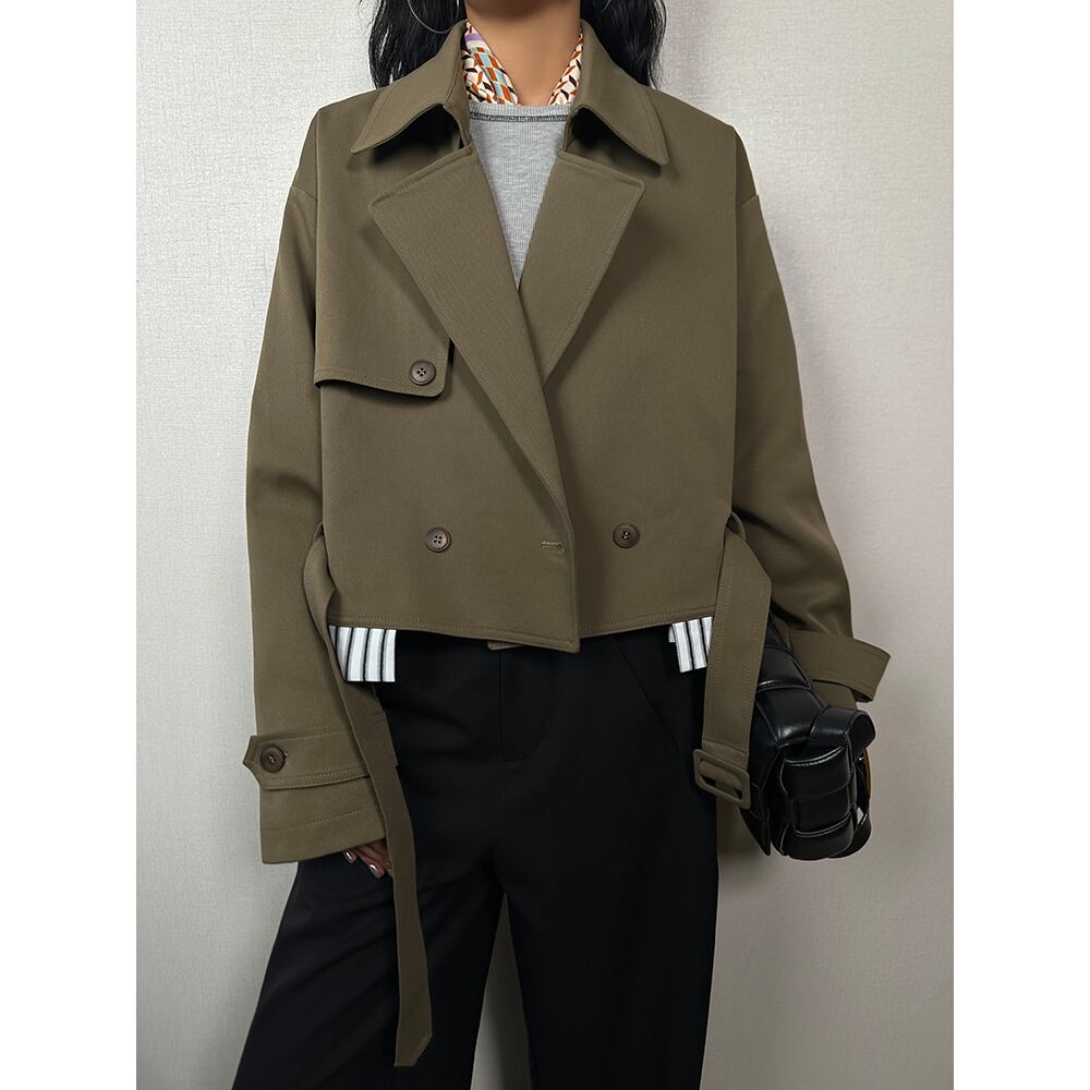 ヒップにかかるくらいのゆったりとした丈感で、スカートと合わせるとより優しく着こなせます。