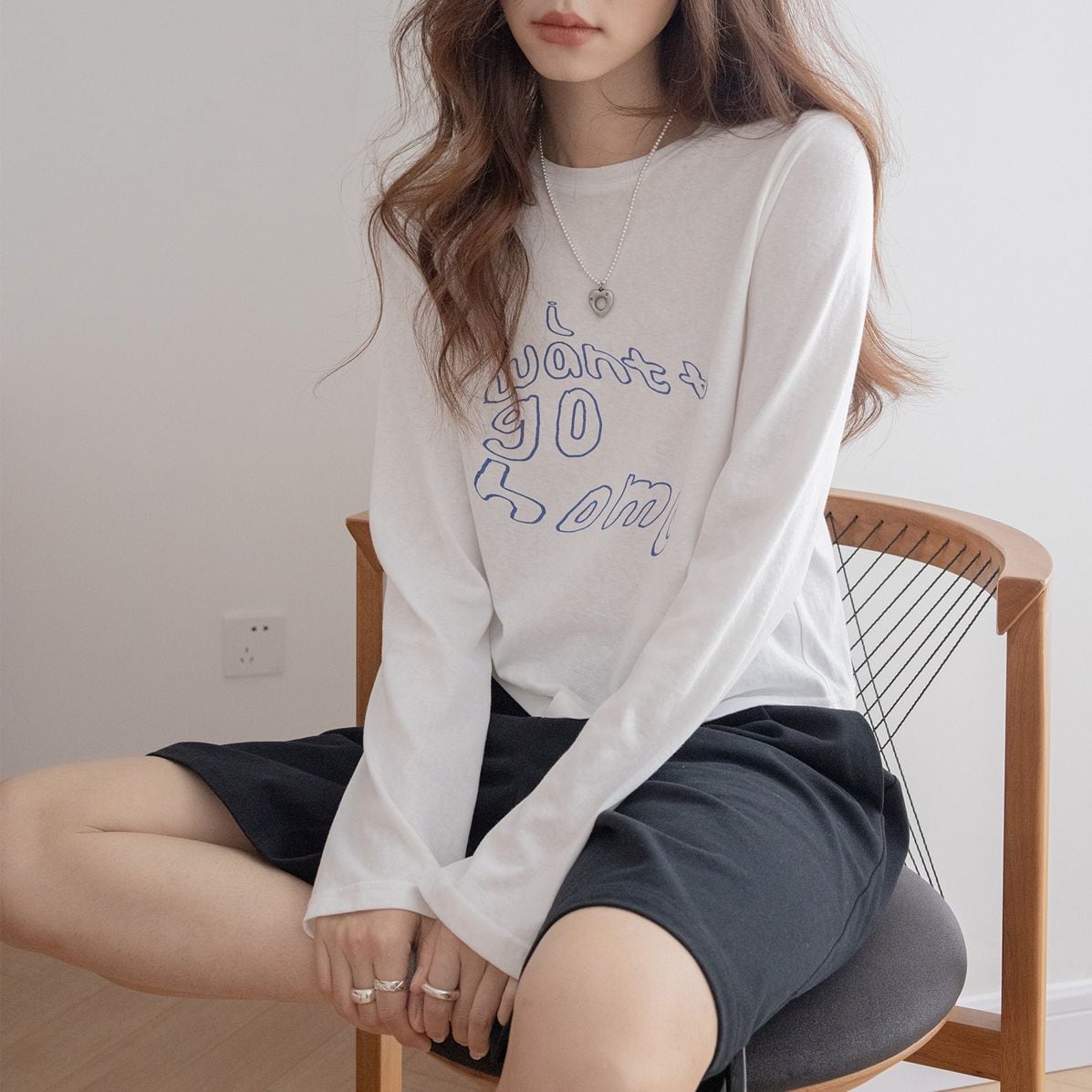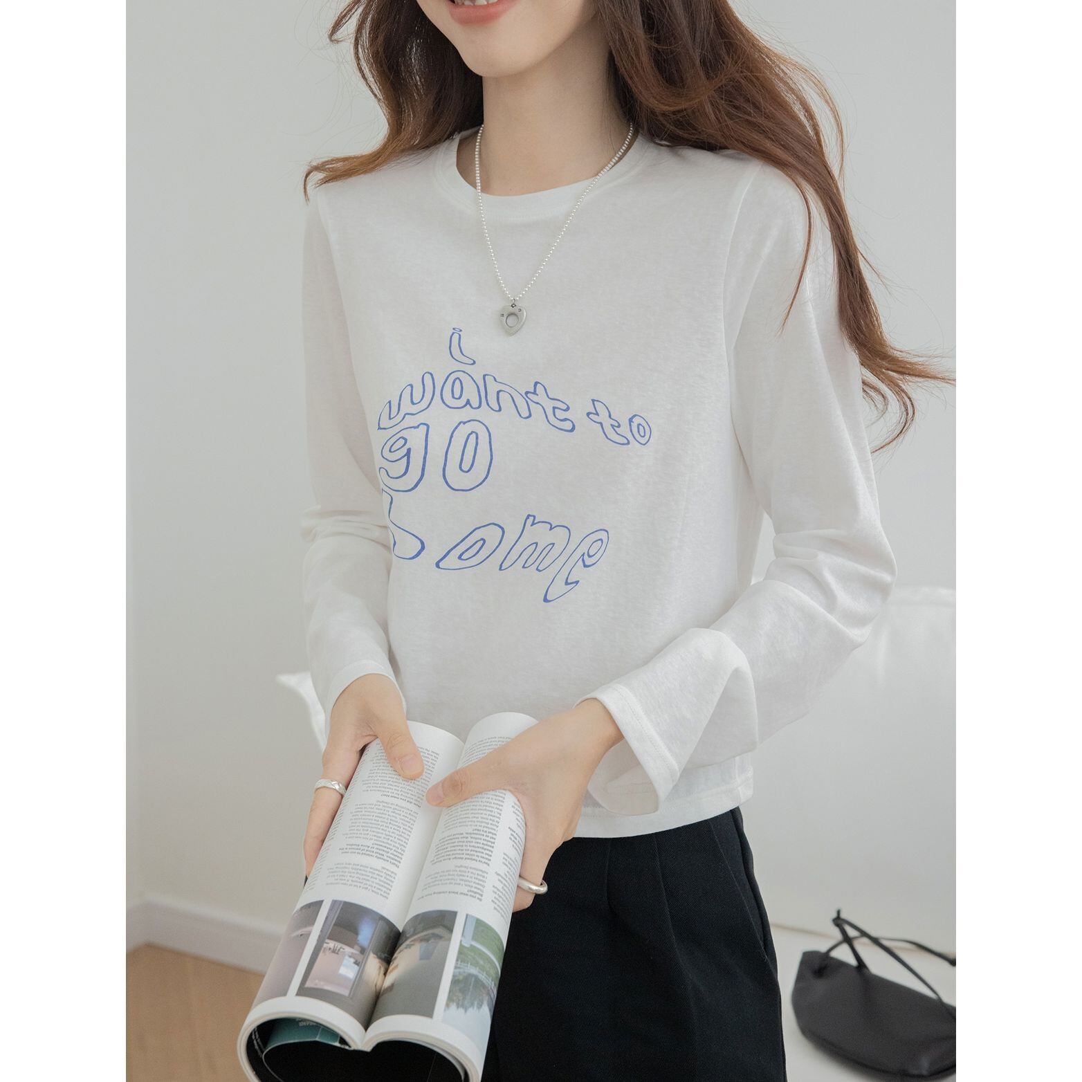 ショートプリント長袖Tシャツ 3color TO1154