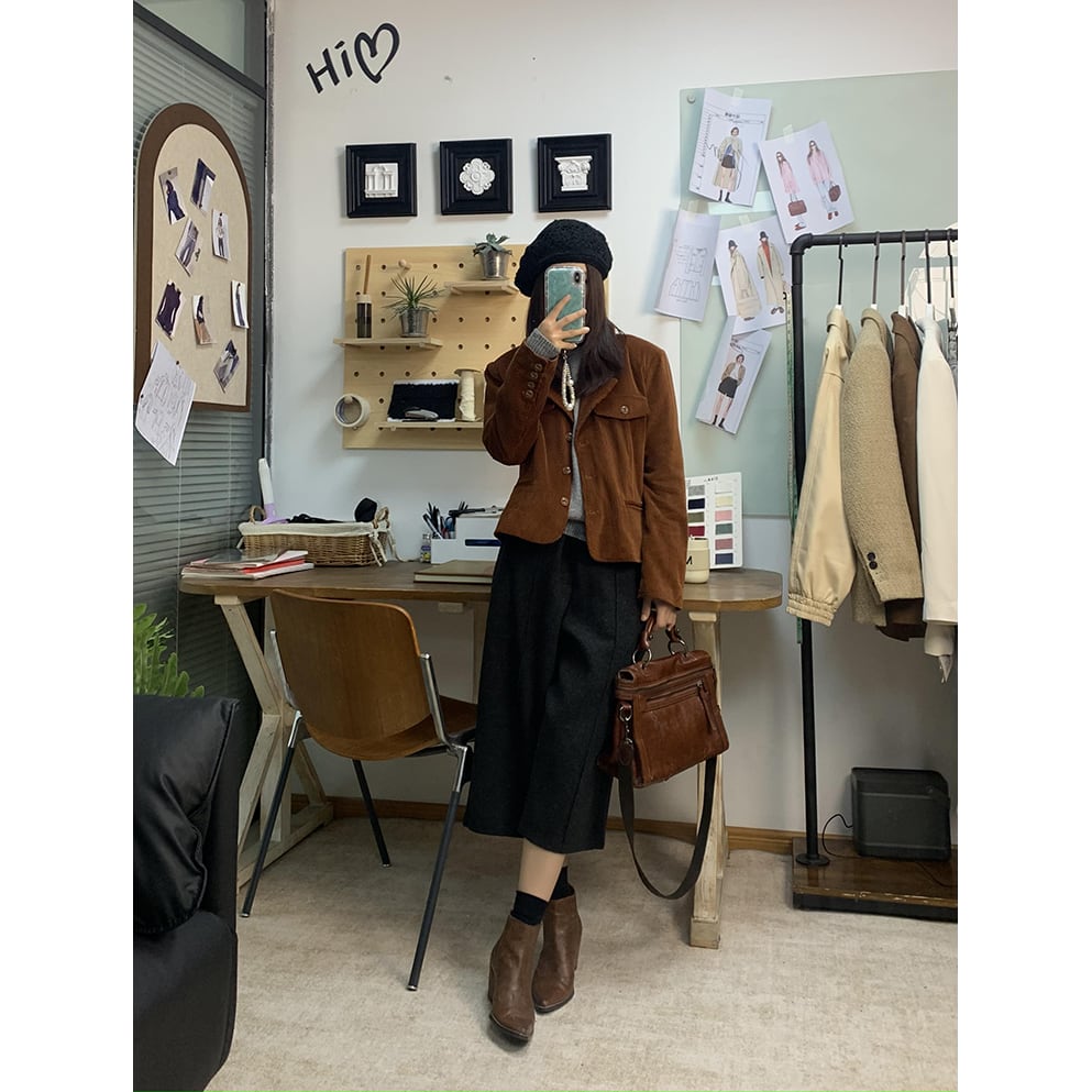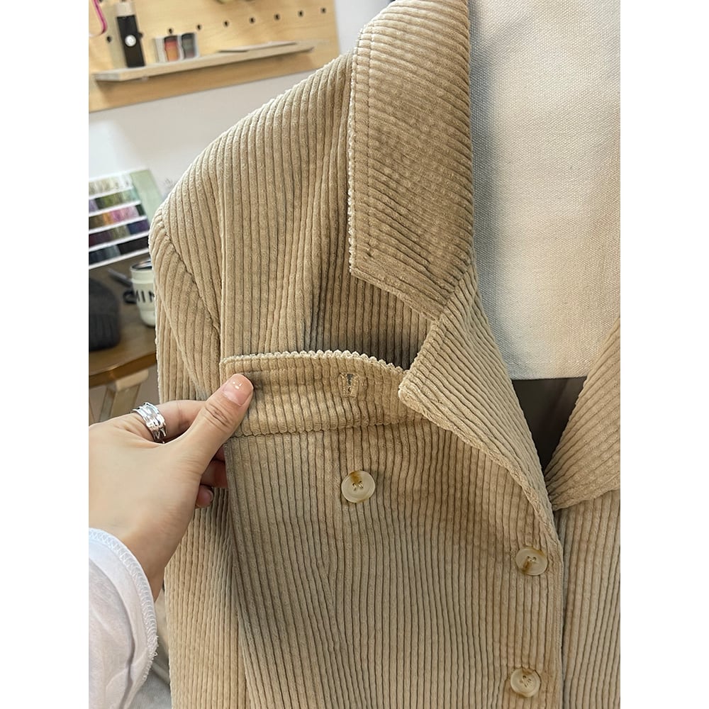 柔らかなコーデュロイ素材を使用しており、季節感を演出しながらも暖かさをプラス。