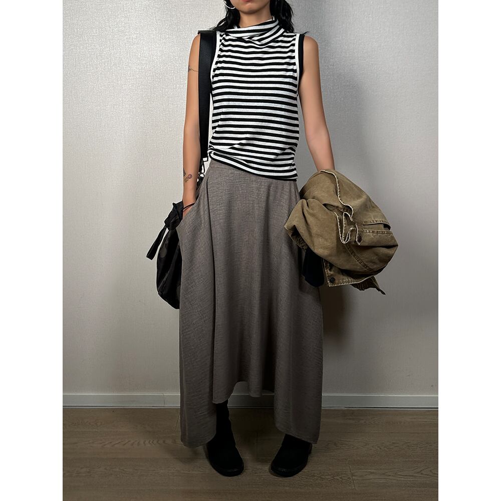 ノースリーブデザインで、レイヤードスタイルや単品での着こなしにもぴったりです。