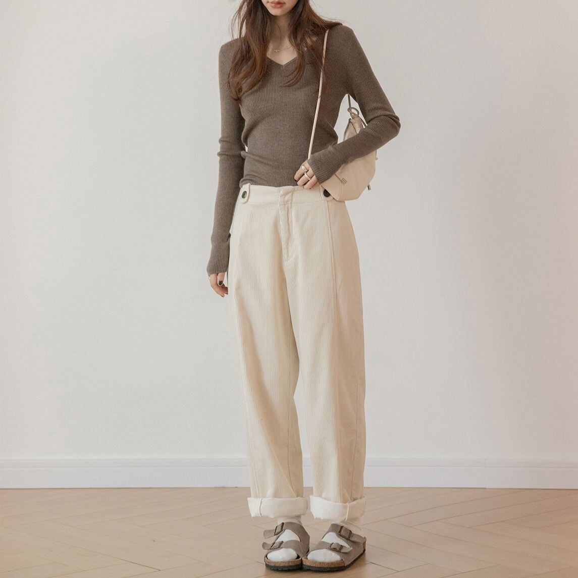 柔らかく暖かみのあるコーデュロイ素材を使用したパンツ。